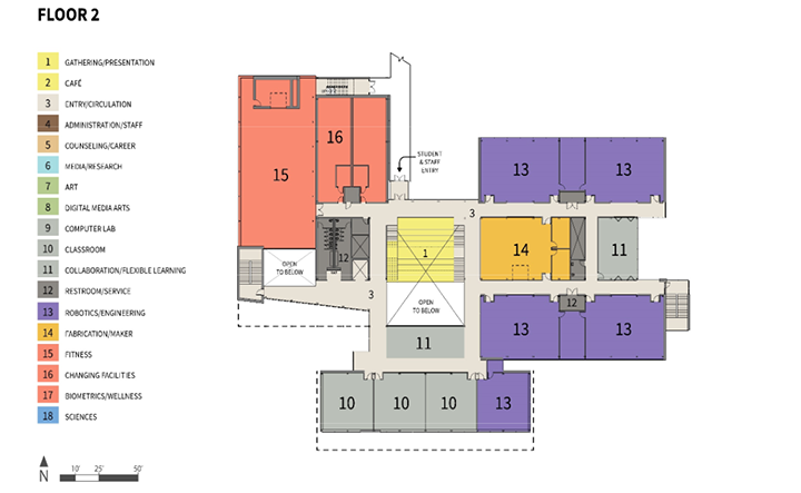 “Working with the core team is critical,” said Lydia Burns, LSW architect, who shared site, building and floor plans for iTech Prep. She said spaces throughout the new three-level building have been thoughtfully planned to reflect the importance of project-based learning and collaboration for students and teachers. Construction on iTech is planned to begin next summer.